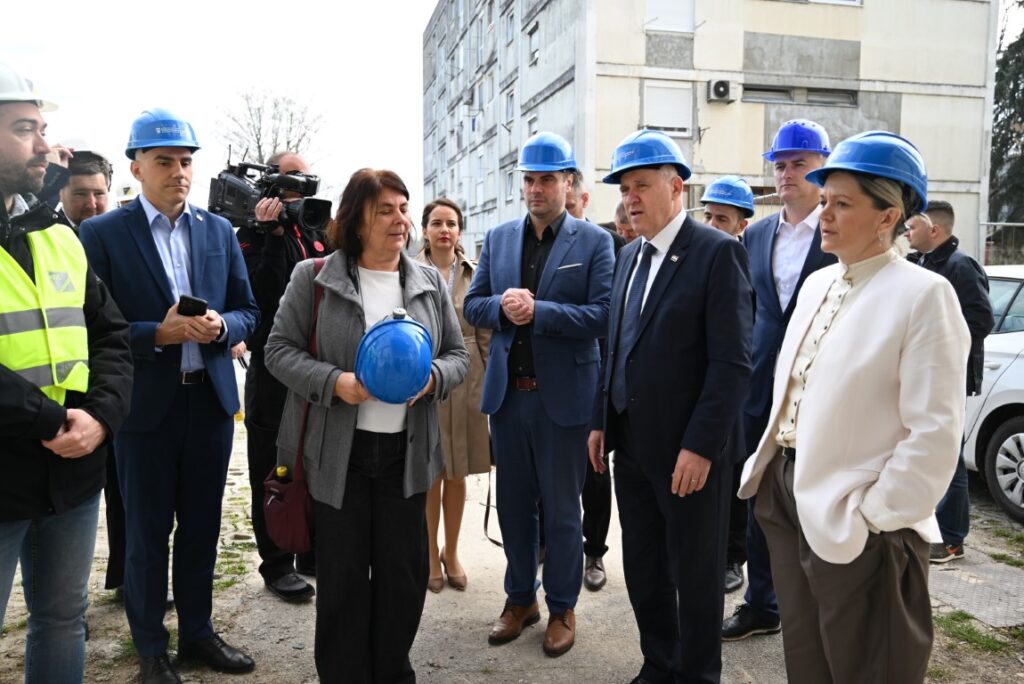 Prilikom današnjeg posjeta, ministar je sa županom i gradonačelnikom obišao gradilište konstrukcijske organizirane obnove višestambene zgrade u Ulici Ivana Meštrovića.