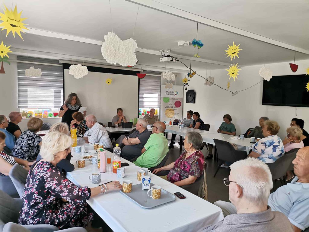 Dr. sc. Daša Poredoš Lavor s umirovljenicima je razgovarala o slobodnim asocijacijama na pojmove „prijateljstvo i prijatelji“, o iznalaženju mirnih rješenja kada dođe do sukoba među prijateljima, a pokušalo se je i odgovoriti na vječno pitanje da li je moguće prijateljstvo između žena i muškaraca. Susret je dodatno oplemenjen s nekoliko motivacijskih priča. U drugom djelu susreta zainteresirani su umirovljenici imali priliku sudjelovati u maloj kreativnoj radionici – izradi privjesaka prijateljstva od recikliranih materijala. Uz puno vedrine, smijeha i podrške – dogovorena je i daljnja suradnja.