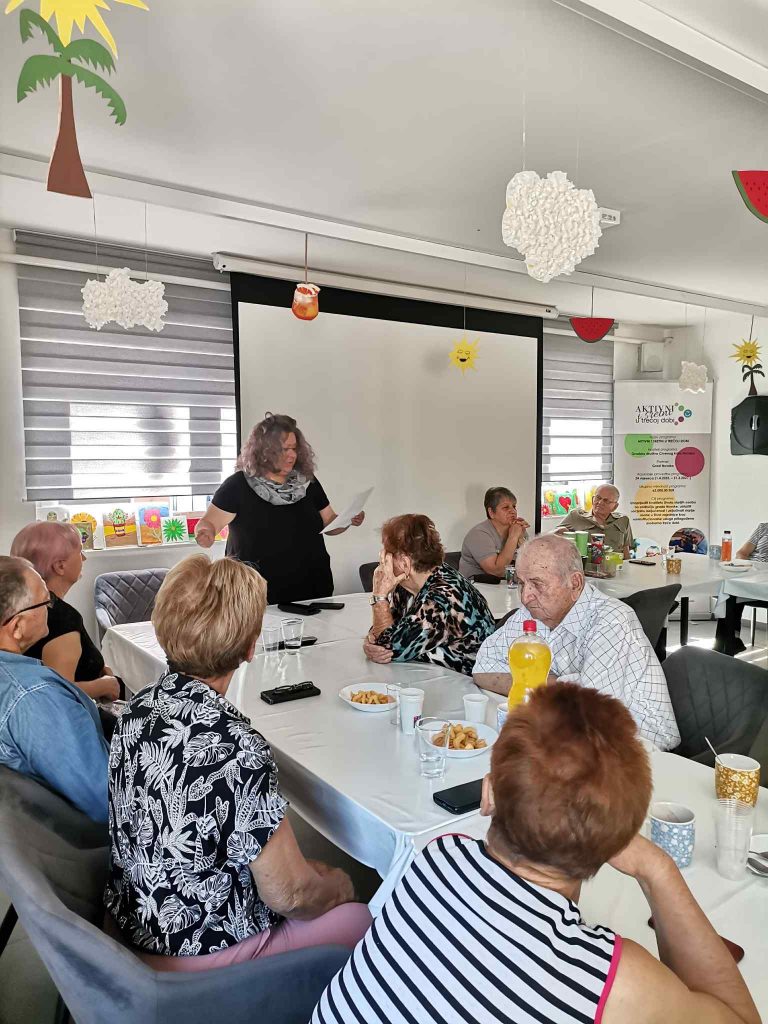 Dr. sc. Daša Poredoš Lavor s umirovljenicima je razgovarala o slobodnim asocijacijama na pojmove „prijateljstvo i prijatelji“, o iznalaženju mirnih rješenja kada dođe do sukoba među prijateljima, a pokušalo se je i odgovoriti na vječno pitanje da li je moguće prijateljstvo između žena i muškaraca. Susret je dodatno oplemenjen s nekoliko motivacijskih priča. U drugom djelu susreta zainteresirani su umirovljenici imali priliku sudjelovati u maloj kreativnoj radionici – izradi privjesaka prijateljstva od recikliranih materijala. Uz puno vedrine, smijeha i podrške – dogovorena je i daljnja suradnja.